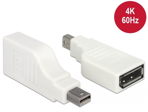 This Adapter by Delock can be connected to a DisplayPort monitor via a free mini DisplayPort interface of the system. Thereby the DisplayPort connector will be turned by 90-. The adapter supports a resolution up to Ultra HD (4K) and is backward compatible to Full-HD 1080p.