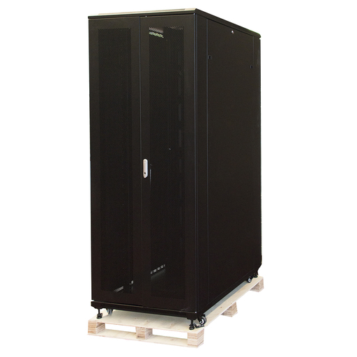 Armadi rack per reti, specifici per alloggiare componenti attivi e passivi per reti 19", semplificare la gestione dei cavi e garantire adeguata aerazione, anche in caso di alta densitÓ dei componenti interni tipici delle installazioni attuali. La larghezza di 800 mm e la profonditÓ di 1000 mm permette di alloggiare server molto profondi e di installare grandi quantitÓ di cavi. Con 2 guidacavi laterali inclusi per la gestione dei cavi. Sono inclusi sia i piedini regolabili in altezza, per livellare lÆarmadio, sia le ruote. In lamiera d'acciaio con una forte capacitÓ di carico, verniciata a polvere. L'armadio Þ disassemblabile con la chiave a brugola inclusa, nel caso debba essere smontato in tutto o in parte per agevolare il trasporto. Porta frontale in vetro, con chiusura a chiave con serratura a maniglia. La porta Þ reversibile, in modo da poter avere l'apertura a destra o a sinistra a seconda della convenienza. Porta posteriore in metallo grigliato con serratura, a due ante. Sezioni laterali removibili con chiusura a chiave. 4 Montanti da 19" anteriori e posteriori regolabili in profonditÓ. In ogni montante l'unitÓ Þ numerata, per semplificare il montaggio dei componenti. PossibilitÓ di ingresso dei cavi di rete dall'alto dell'armadio o dal basamento. Il basamento ha 5 aperture richiudibili per l'accesso dei cavi da diverse posizioni. Incluso 20 kit di viti per il montaggio dei dispositivi e messa a terra. Tetto predisposto per unitÓ di ventilazione, e lungo i bordi superiori e inferiori dell'armadio sono posizionate delle fessure per la ventilazione passiva. Durante il trasporto l'armadio Þ fissato su un bancale con dei blocchi per rendere pi¨ sicuro il trasporto e proteggere i piedini durante il trasporto. Ampia gamma di accessori disponibili. CapacitÓ di carico 800 kg. Colore: nero, RAL9005. Testato in conformitÓ con gli standard EN55022:2010 EN55024:2010 EN61000-3-2:2014 EN61000-3-3:2013