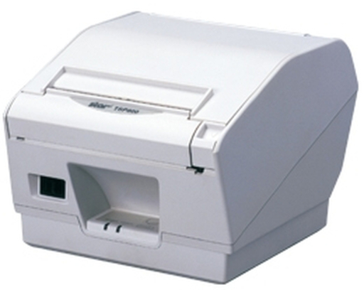 Stampante per scontrini, Termico diretto, Risoluzione: 8 punti /mm (203dpi), Larghezza utenza (max): 112 mm, Larghezza di stampa (max.): 104 mm, Velocit (max.): 150 mm/sec., Taglierina, ESC/POS, Star, ordinare a parte: Alimentatore, Interfaccia, Colore: bianco