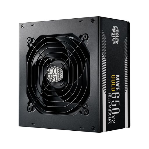 Cooler Master MWE Gold 650 - V2 Full Modular. Potenza totale: 650 W, Tensione di ingresso AC: 90 - 264 V, Frequenza di ingresso AC: 47 - 63 Hz. Connettore scheda madre: 24-pin ATX, Tipo di cablaggio: Modulare. Utilizzo: PC/server, Fattore di forma dell'unit di alimentazione (PSU): ATX, Certificazione 80 PLUS: 80 PLUS Gold. Colore del prodotto: Nero, Tipo di raffreddamento: Attivo, Diametro del ventilatore: 12 cm. Larghezza: 150 mm, Profondit: 160 mm, Altezza: 86 mm