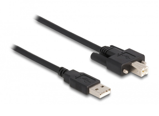 This USB cable by Delock enables the connection between a device with a USB Type-B connector and a PC or a laptop equipped with a free USB port. The screws of the connector secure the connection and prevent accidental unplugging of the cable.