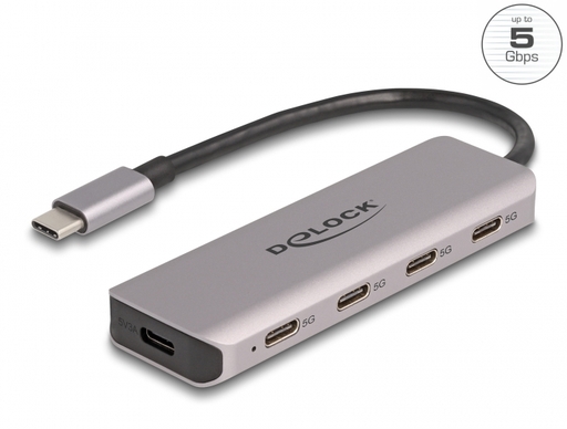This solid USB hub by Delock with metal housing can be connected to a computer, laptop or mobile device via the USB Type-C interface. It expands the computer by 4 USB-C ports. Different USB devices such as USB flash memory, card reader, external enclosure etc. can be connected.