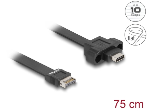 Questo cavo Delock può essere collegato alla presa interna USB 10 Gbps USB Type-E Key A di una scheda madre o di una scheda PCI Express e può essere utilizzato per estendere una connessione USB. Il connettore USB Type-C™ può essere fissato con due viti esistenti, ad esempio su una staffa di alloggiamento o su un telaio con l'incavo corrispondente. In tal modo, è possibile installare un connettore USB in una posizione facilmente accessibile.