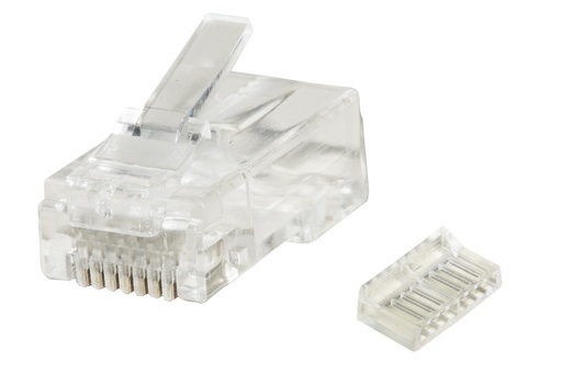 Plug per reti categoria 6A RJ45 8P8C non schermati UTP con inserto esterno per agevolare l'inserimento dei fili nel connettore.Risolve il problema di infilare i filli del cavo rete nel connettore nella giusta sequenza, condizione necessaria per il rispetto delle prestazioni del cavo.Prima si posizionano i fili nell'inseritore esterno nella sequenza voluta, poi si infila l'inseritore nel connettore e si crimpa con la pinza.E' molto pi¨ agevole che inserire i conduttori nel connettore uno ad uno.Connettori per assemblare cavi di rete categoria 6, telefonia, ecc.Per cavo flessibile o solido, anche per uso POE.Cicli di Accoppiatore: maggiore 750Forza di inserimento: minore 20NMateriale dei contatti: Bronzo fosforoso Rivestimento dei contatti: Nichel, placcato oro 30 micronMateriale del corpo del connettore: Policarbonato, trasparenteDiametro del conduttore di rame fino a AWG23.Gamma di temperatura: -40¦C / +80¦CDiametro del rivestimento esterno: 3,2 - 5,5 mmCarico di corrente: 1,5 A a 50¦ CFacile montaggio con pinza modulare LKCRIMP