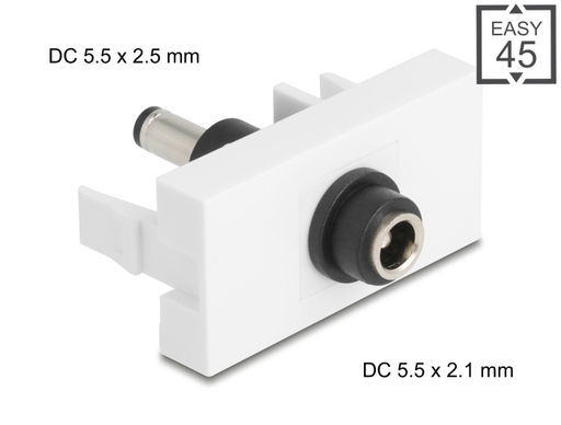This Easy 45 module by Delock is designed to provide an DC port and can be attached to the Delock Easy 45 module system. The simple snap-in mechanism ensures that the module is firmly in place and can be easily removed if necessary.