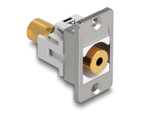 This stereo jack panel mount by Delock can be used to connect audio cables and is suitable for installation in a housing.