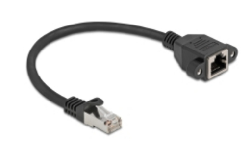 This network cable by Delock can be used to extend and connect various devices. The screwable RJ45 jack can be attached, for e.g., to a slot bracket or a housing with a suitable cut-out.