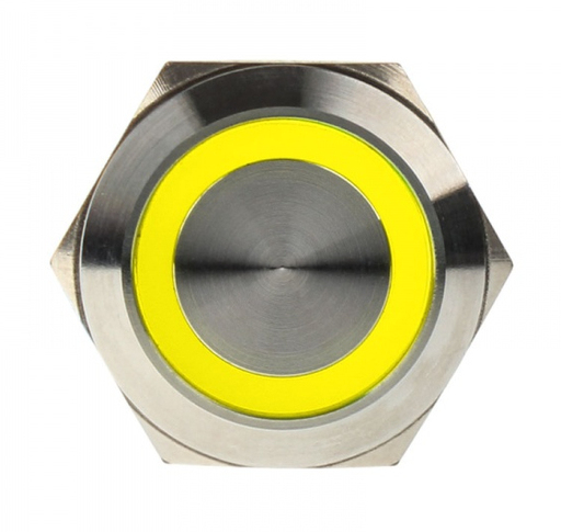 Pulsante a Pressione DimasTech®, 25mm ID, Colore Corona Led/Illuminazione Giallo, Alimentazione Corona Led 12V, AC/DC, Vita Utile 40.000 Ore, Azione Alternata