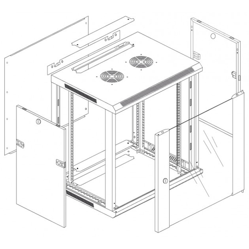 Armadio rack a muro a sezione unica 20 unità con pannelli laterali asportabili