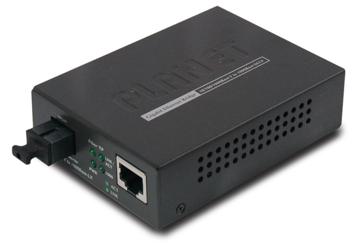 PLANET GT-80x gigabit media converter series extends communications distance with highly Gigabit performance via fiber optic cable. The GT-80x series provides media conversion between 10/100/1000Base-T and 1000Base-SX/LX interfaces such as multi-mode LC/SC connectors (220m / 550m), single-mode LC/SC connectors (10/20/30/40/50/70/120km) and single fiber connectors (WDM, 15/60km) for various fiber optic applications.