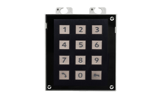 Das Nummerntastaturmodul dient zum Anwählen eines Benutzers mit Hilfe der Position im Telefonverzeichnis oder der Telefonnummer. Des Weiteren können mit Hilfe eines Zahlencodes das Schloss beziehungsweise weitere Funktionen betätigt werden. Die Ziffern und Symbole der Tastatur sind hinterleuchtet. Jetzt auch in Schwarz!