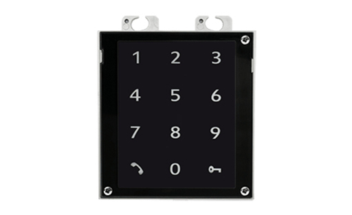 Das Touch-Keypad-Modul stellt eine weitere Option für die 2N® IP Verso dar. Um die Tür zu öffnen, genügt es, den richtigen PIN-Code einzugeben. Einen Zutrittscode können viele Benutzer gemeinsam benutzen oder jeder kann einen eigenen Code haben. Das Touch-Keypad-Modul ist für den Einsatz im Innen- sowie Außenbereich geeignet.