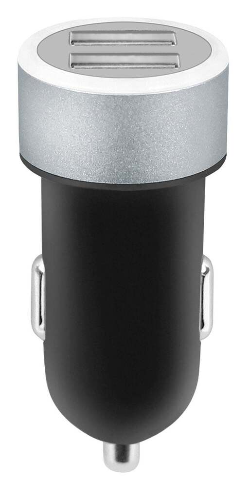 • Caricatore USB da auto per smartphone e dispositivi portatili, provvisto di 2 porte USB