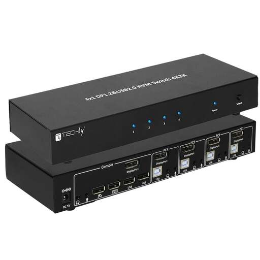 - KVM switch in grado di gestire quattro computer attraverso un monitor DisplayPort, una tastiera USB, un mouse USB e altri dispositivi USB 2.0 collegati