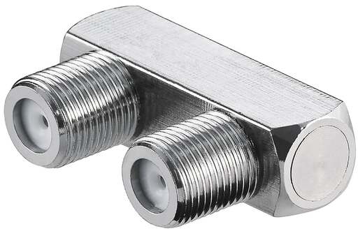 • Spina adattatore per cavo d antenna che consente il collegamento di due cavi coassiali provenienti da una direzione, ad esempio in scatole da incasso