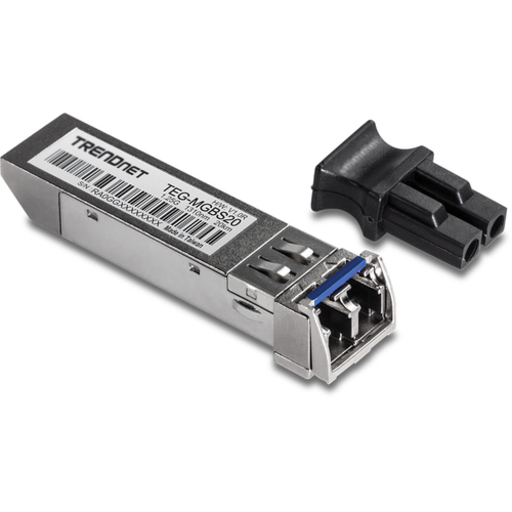 Il Modulo LC Modalità Singola SFP di TRENDnet, modello TEG-MGBS20, è compatibile con slot standard SFP presenti sugli switch di rete e convertitori multimediali in fibra. Ciascun SFP in fibra a modalità singola TEG-MGBS20 è dotato di un'interfaccia connessione in fibra LC duplex, supporta un traffico dati ad alta velocità fino a 1.25Gbps e supporta connessioni in fibra a modalità singola gigabit per applicazioni di rete a lunga distanza fino a 20 km (12.4 mi.).