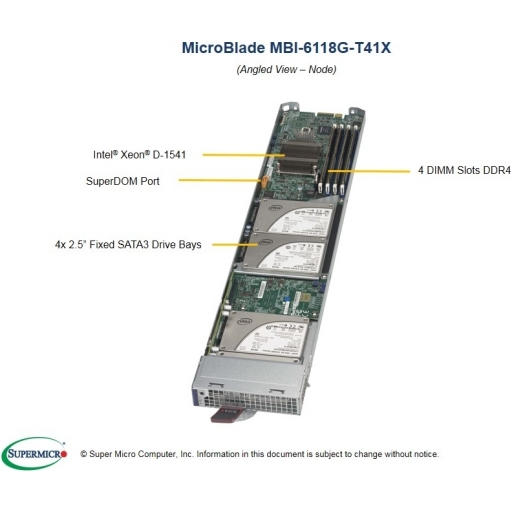 The Supermicro MicroBlade microserver represents an entirely new type of computing platform. It is a powerful and flexible extreme-density 6U/3U all-in-one total system that features 28/14 hot-swappable MicroBlade Servers supporting 28/14 Newest Dual-Node Xeon UP systems with Intel E3-1200 v5 family configurations with up to 2 SSDs/1 HDD per Node. The 6U/3U MicroBlade enclosure can incorporate up to 2 Chassis Management Modules, and up to 2 Switch Modules for efficient, high-bandwidth communications. It can incorporate up to 8 redundant (N+1 or N+N) 1600/2000W high-efficiency (95%/96%) power supplies with cooling fans. This innovative new generation architecture includes microserver, networking, storage, and unified remote management for Cloud Computing, Video Streaming, Content Delivery, Social Networking, Desktop Virtualization and Remote Workstation applications.
