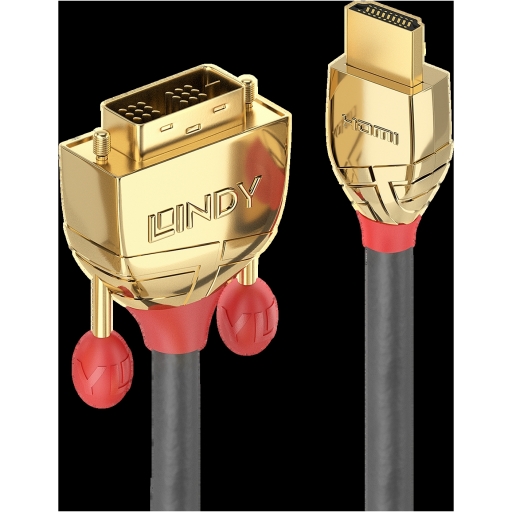 Cavo HDMI- a DVI-D di qualit+ superiore per installazioni professionali e ambienti critici Supporta risoluzioni DVI fino a 1920x1200@60Hz e HDTV fino a 1080p Connettori e contatti in metallo placcati oro 24K Cavo con tripla schermatura a bassa attenuazione, resistente alla corrosione, conduttori OFC 24AWG ad alte prestazioni 25 anni di garanzia Dal concetto di connettivit+ delle nuove linee sviluppate da Lindy nascono i cavi HDMI- a DVI-D Gold Line, la soluzione professionale ad alte prestazioni per ambienti critici e installazioni senza compromessi. I cavi HDMI- a DVI-D Gold Line sono realizzati con conduttori 24AWG OFC con tripla schermatura per performance ottimali e resistenza alla corrosione. Contatti e connettori sono placcati oro 24K per mantenere la massima integrit+ del segnale e affidabilit+. Supportano risoluzioni fino a 1920x1200@60Hz incluso risoluzioni HD fino a 1080p. Questi cavi di qualit+ superiore a bassa attenuazione garantiscono trasmissioni di segnali affidabili anche su distanze molto lunghe. Disponibili in diverse metrature: 0.5m, 1m, 2m, 3m, 5m, 10m e 15m