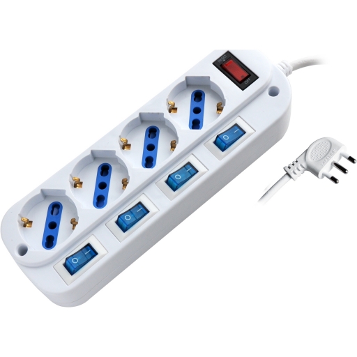 • Provvista di 4 interruttori indipendenti per attivare/disattivare ogni singola presa