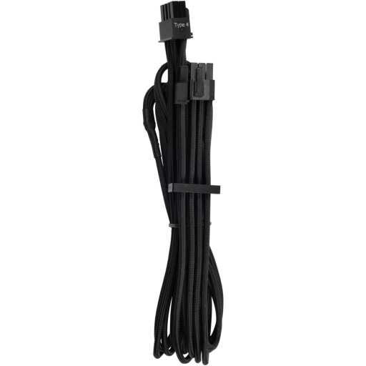 The CORSAIR Premium Individually Sleeved PCIe Type 4 Gen 4 cables combine premium paracord sleeving and a heatshrink-less finish with wide compatibility for CORSAIR Type 4 Power Supplies.