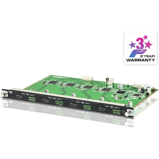 La Scheda ingresso HDMI a 4 porte VM7804 offre un modo semplice per indirizzare una delle 4 sorgenti audio/video verso uno dei 4 schermi, in combinazione con uno switch matrix modulare ATEN.