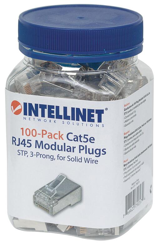 • Barattolo da 100 plug modulari RJ45 Cat5e