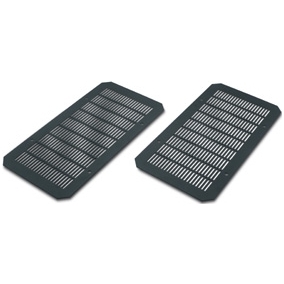 Larmadio NetShelter WX viene consegnato con inserti pieni nei pannelli inferiore e superiore. Gli utenti possono scegliere di installare tali piastre ventilate nel pannello superiore, nel pannello inferiore o in entrambi per aumentare il flusso daria.