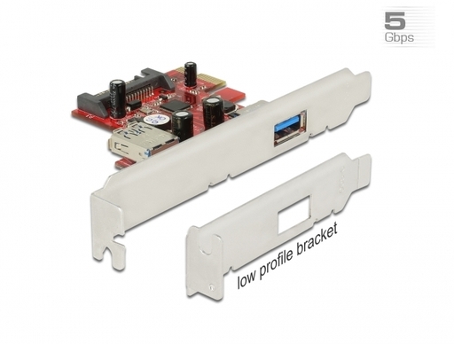 Questa scheda PCI Express Delock espande il PC di due porte USB 3.0. È possibile collegare vari dispositivi USB Tipo-A, tra cui docking station, lettori di schede, alloggiamenti esterni, ecc., alla scheda.