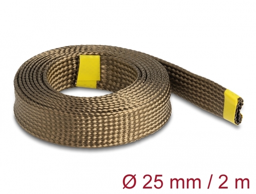 This braided sleeve by Delock is made of special basalt fibers and has an excellent temperature resistance, tensile strength, and corrosion resistance to protect sensitive cables, tubes and wires.