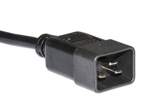 Cavi di alimentazione a spina rettangolare spesso usati su gruppi di continuitÓ UPS da 3000 VA in su per connettere i server. Cavo di connessione 16A con connettore IEC320 C19 femmina e spina maschio IEC320 C20. Cavo: H05VV-F 3G Sezione dei conduttori 1,5 mmï Dati nominali: 250 VAC/16 A Fili: 3 Lunghezza mt. 2 Potenza Max. 3600W Voltaggio Max.250V Corrente Max. 16 A