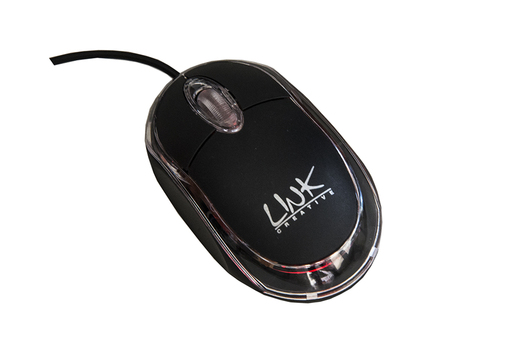 Mini mouse con connettore USB, lunghezza cavo Mt 1,10. Dimensioni che lo rendono trasportabile, e adatto sia per notebook sia per PC. La rotella di scorrimento schermate funge da terzo tasto. Sensore rosso illuminato. Colore nero.