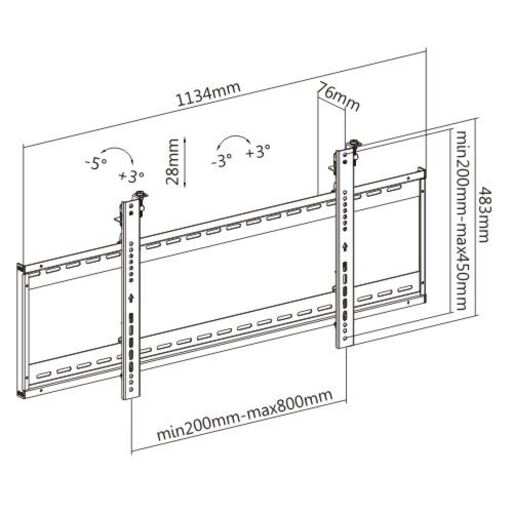 Supporto a muro per TV o schermi piatti 54"-70" LED, LCD. Supporto professionale sia per installazioni di singole TV o per installazioni multiple Video Wall che offre versatilitÓ e compatibilitÓ tra i diversi schermi. Si possono allineare diversi supporti di questo modello per installare diversi monitor insieme rendendoli quindi in grado di generare immagini in comune. Con possibilitÓ di fare slittare lateralmente gli schermi per semplificare lÆinstallazione e lÆallineamento rapido di pi¨ schermi insieme. Micro aggiustamenti in sei punti per regolare il livello e lÆallineamento. Con capacitÓ di carico di 70 kg e max VESA 800x400. Si estende fino a 202 mm dal muro e si riduce a 60 mm di distanza quando Þ ritratto. La staffa ha la possibilitÓ di essere regolata lateralmente e come livello, per allineare e posizionare perfettamente i video tra di loro. Ideale per installazioni in pubblico o in aree commerciali con predisposizione per lÆinstallazione di un lucchetto antifurto. In acciaio laminato a freddo 2/2,5 mm. Accesso facilitato per lÆinstallazione e la manutenzione dei cavi. Con pomello di sgancio rapido dello schermo per manutenzione e gestione. Verniciatura a polvere. Colore nero. CompatibilitÓ VESA: 200x200,300x300,400x200,400x400,600x400,800x400 Regolazione livello +3¦~-3¦ Regolazione inclinazione: -5¦~+3¦