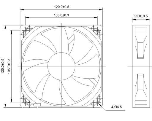 Ventole 12 Volt silenziose e a basso consumo. Dimensione totale della ventola cm 12 x 12 x 2,5, possono essere usate su alimentatori, per raffreddare Hard Disk, CPU, altri dispositivi. Le viti per l'installazione sono incluse. La struttura Þ in plastica rinforzata con standard di sicurezza infiammabilitÓ UL94 V0. Con connettore 3 poli passo 2,54 mm. (3 fili) per controllo velocitÓ, tachimetria, rilevazione della rotazione, controllo termico. La ventola funziona anche a 2 fili, usando solo il filo rosso (positivo) e il nero (negativo). Lunghezza cavo 20 cm. Tensione nominale: DC 12 Volt. Tensione operativa: 6-13,8 Volt. Corrente: 0,10 A. VelocitÓ massima: 1700 Rpm (Revolutions Per Minute ù Giri al minuto della ventola). Flusso aria massima: 39,2 CFM (Cubic Feet per Minute ù Piedi cubici al minuto, riferito allÆaria che smuove la ventola). Il piede Þ unÆunitÓ di misura inglese che corrisponde a circa 30 cm. Insomma Þ il flusso di aria generato dalla ventola. Moltiplicato per la corrente, dÓ lÆidea dellÆefficienza energetica della ventola. Un rapporto superiore a 75 indica un buon rapporto, in questa ventola Þ molto superiore. Pressione aria massima: 2,3 mm H2O (Millimetri di acqua, unitÓ di misura della pressione) Disturbo acustico: 27 dBA (Decibel). Rotazione in senso orario.