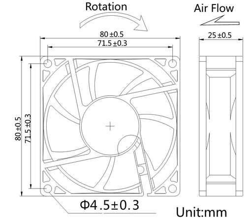 Ventole 12 Volt silenziose e a basso consumo. Dimensione totale della ventola cm 8x8x2,5, possono essere usate su alimentatori, per raffreddare Hard Disk, CPU, altri dispositivi. Le viti per l'installazione sono incluse. La struttura Þ in plastica rinforzata con standard di sicurezza infiammabilitÓ UL94 V0. Con connettore 3 poli passo 2,54 mm. (3 fili) per controllo velocitÓ, tachimetria, rilevazione della rotazione, controllo termico. La ventola funziona anche a 2 fili, usando solo il filo rosso (positivo) e il nero (negativo). Lunghezza cavo 20 cm. Tensione nominale: DC 12 Volt. Tensione operativa: 6-13,8 Volt. Corrente: 0,13 A. VelocitÓ massima: 2000 Rpm (Revolutions Per Minute ù Giri al minuto della ventola). Flusso aria massima: 28,6 CFM (Cubic Feet per Minute ù Piedi cubici al minuto, riferito allÆaria che smuove la ventola). Il piede Þ unÆunitÓ di misura inglese che corrisponde a circa 30 cm. Insomma Þ il flusso di aria generato dalla ventola. Moltiplicato per la corrente, dÓ lÆidea dellÆefficienza energetica della ventola. Pressione aria massima: 2 mm H2O (Millimetri di acqua, unitÓ di misura della pressione) Disturbo acustico: 27 dBA (Decibel). Rotazione in senso orario.
