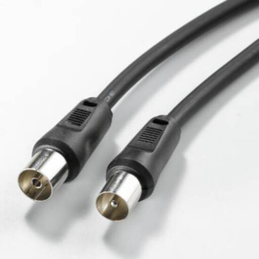 Cavi antenna per collegamento dalla TV alla presa TV a muro. Connettori maschio/femmina. Doppia schermatura, 75 ohm. Colore nero.
