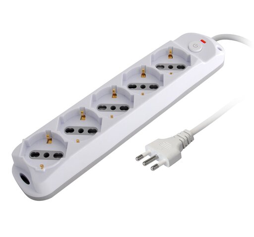 • Multipresa con 5 prese 10/16A bipasso/Schuko, 250V