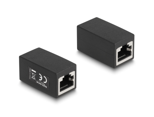This coupler by Delock can be used to connect or extend two RJ45 network cables.