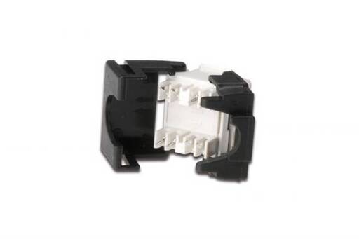 Digitus DN-93502 ( KEYSTONE JACK) RJ45 8 POLI PER PLACCHE A MURO UTP. cat. 5E (categoria 5E) per reti. Questi inserti vengono messi nelle placche a muro o nei pannelli Patch vuoti. Design sottile, se ne possono inserire 24 accostati nei pannelli patch da 24 posti 1U. Il cavo arriva nella terminazione posteriore e non necessita di attrezzi per l'inserimento nel connettore (Toolfree/Tool Less). Dal connettore RJ45 femmina parte il cavo rete all'HUB di rete o alla scheda. Materiale: ABS non alogeno, UL 94 V0 Contatti: Phosphor bronze Ricopertura dei contatti: Nickel, doratura 0,6Á Materiale PCB: FR4, spessore 1,2mm Temperatura operativa: -10¦C +50¦C Colore bianco