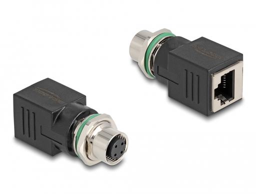 This industrial Ethernet adapter by Delock can be used to connect various components with M12 connectors, e.g. for machine control or automation.