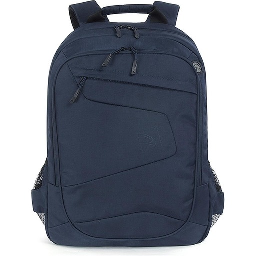 Zaino sportivo e business per laptop 15.6" e MacBook Pro 16'', realizzato in tessuto ottenuto dalla plastica riciclata. Tasca esterna frontale organizzata e tasca piccola per accessori entrambe con zip. Un piccolo foro dedicato, consente l'uscita degli auricolari. L'ampio vano interno è dotato di una tasca imbottita per laptop o MacBook. Lateralmente vi sono due tasche elastiche per bottiglia, ombrello ed oggetti di dimensioni simili. Il lato posteriore, con schienale ergonomico e spallacci, regolabili e imbottiti, è provvisto di una fascia per il trolley.