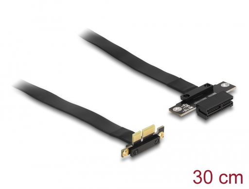 This PCI Express riser card by Delock is used to connect a PCI Express x1 card. The flexible cable allows a space-saving installation inside the computer case.