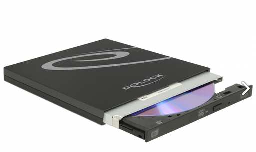 This enclosure by Delock is an external solution for different Ultra Slim SATA drives with 9.5 mm height e.g. DVD-ROM, DVD-RW, Blu-ray etc. The enclosure can be connected either to a USB Type-A or USB Type-C port by using the included cables.