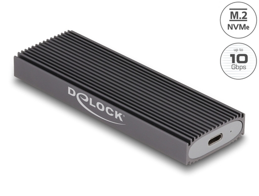 This enclosure by Delock enables the installation of an M.2 PCIe NVMe SSD or SATA M.2 SSD in 2280, 2260, 2242 and 2230 format. It can be connected via USB to the PC or laptop. The robust metal housing with cooling fins ensures an optimum temperature of the memory.