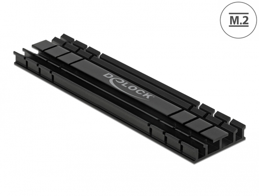This heat sink by Delock can be used for heat dissipation of an M.2 module and can be fixed with the attached self-adhesive thermal pads to the M.2 module.