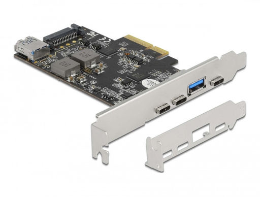 Sufficient ports - 3 x USB Type-C and 2 x USB Type-A The PCIe card offers three USB-C port as well as two USB Type-A ports. Thus devices can be connected with 10 Gbps at each port.