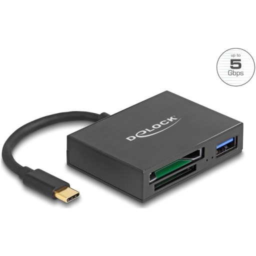 Delock Lettore di schede USB-C™ per schede di memoria XQD e SD + porta USB 5 Gbps Tipo-A.