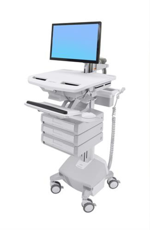 Rimanete produttivi e con la massima libertà di movimento grazie al nostro sistema di alimentazione certificato. Questo carrello per il settore dell'assistenza sanitaria, innovativo, veramente ergonomico e facilmente manovrabile, presenta un meccanismo di regolazione dell'altezza che permette l'uso sia da seduti che in piedi, sistema di posizionamento indipendente del display e un ripiano per tastiera a inclinazione negativa regolabile.