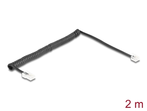 This telephone coiled cable by Delock connects analogue devices with ISDN sockets and serves as a connection cable for telephones, routers, modems and splitters.
