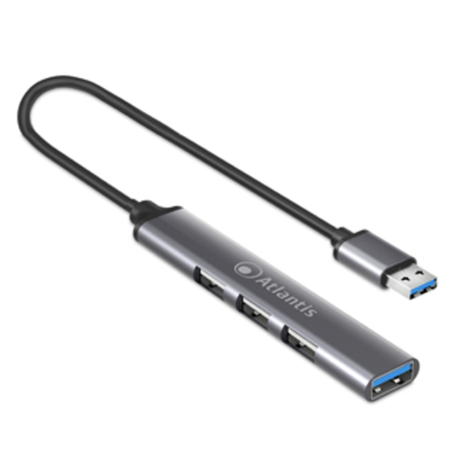 HUB ATLANTIS P014-UH313 4 porte USB 1x3.0 3x2.0 cavo finitura alluminio