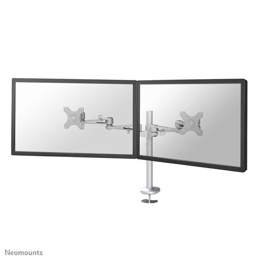 Questo braccio porta monitor NewStar, modello FPMA-D935D consente di collegare due schermi LCD/LED/TFT su di una scrivania con la modalità di fissaggio su piano attraverso una vite centrale.